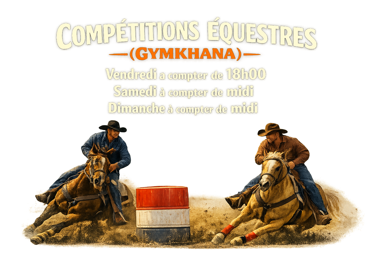 Entre vitesse fulgurante et précision impressionnante, les courses de barils vous offriront un spectacle aussi spectaculaire qu’enlevant. Chaque passage est une démonstration d’agilité, de contrôle et de puissance, où cavaliers et chevaux repoussent leurs limites pour atteindre la perfection.